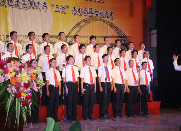 廣西新發(fā)展交通集團公司機關(guān)一曲激情飛揚的合唱《我的祖國》拉開了紅歌比賽序幕。當(dāng)晚,來自集團公司機關(guān)及其各直屬單位的共10個參賽隊用嘹亮的歌聲激情演唱,一曲曲紅歌振奮人心、鼓舞士氣、催人奮進。經(jīng)過激烈角逐,廣西路橋建設(shè)有限公司以一曲四聲部深情合唱《太陽最紅,毛主席最親》勇奪紅歌比賽一等獎,廣西公路橋梁工程總公司放歌的《江山》和廣西航務(wù)工程處的大合唱《保衛(wèi)黃河》同獲二等獎,來自廣西交通科學(xué)研究院的《年輕的朋友來相會》、廣西交通物資總公司的《我和我的祖國》及廣西中路交通建設(shè)總公司的《祖國不會忘記我》榮獲三等獎。